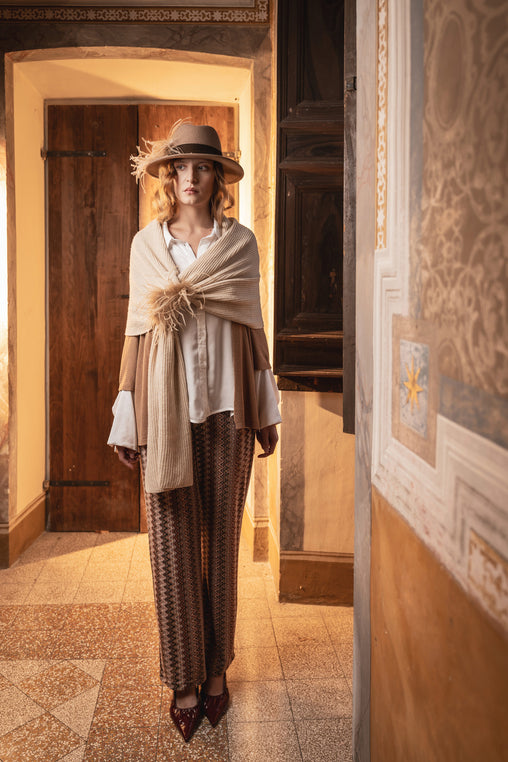Le capsule Alessandra C, costituite da Abbigliamento e Accessori, sono un must have per chi sceglie l'eleganza e il comfort di outfit raffinati e artigianali, in cui ogni singolo dettaglio, dalla scelta del filato fino alle applicazioni e i ricami, fatti a mano, sono accuratamente selezionati per rispettare gli alti standard del Made in Italy.