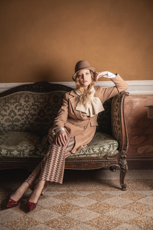 Alessandra C. reinterpreta il mondo della lana e del filato, alla luce dei linguaggi della moda contemporanei. I raffinati capi, sono confezionati con maestria artigianale, nello stabilimento che produce maglieria dal 1990.